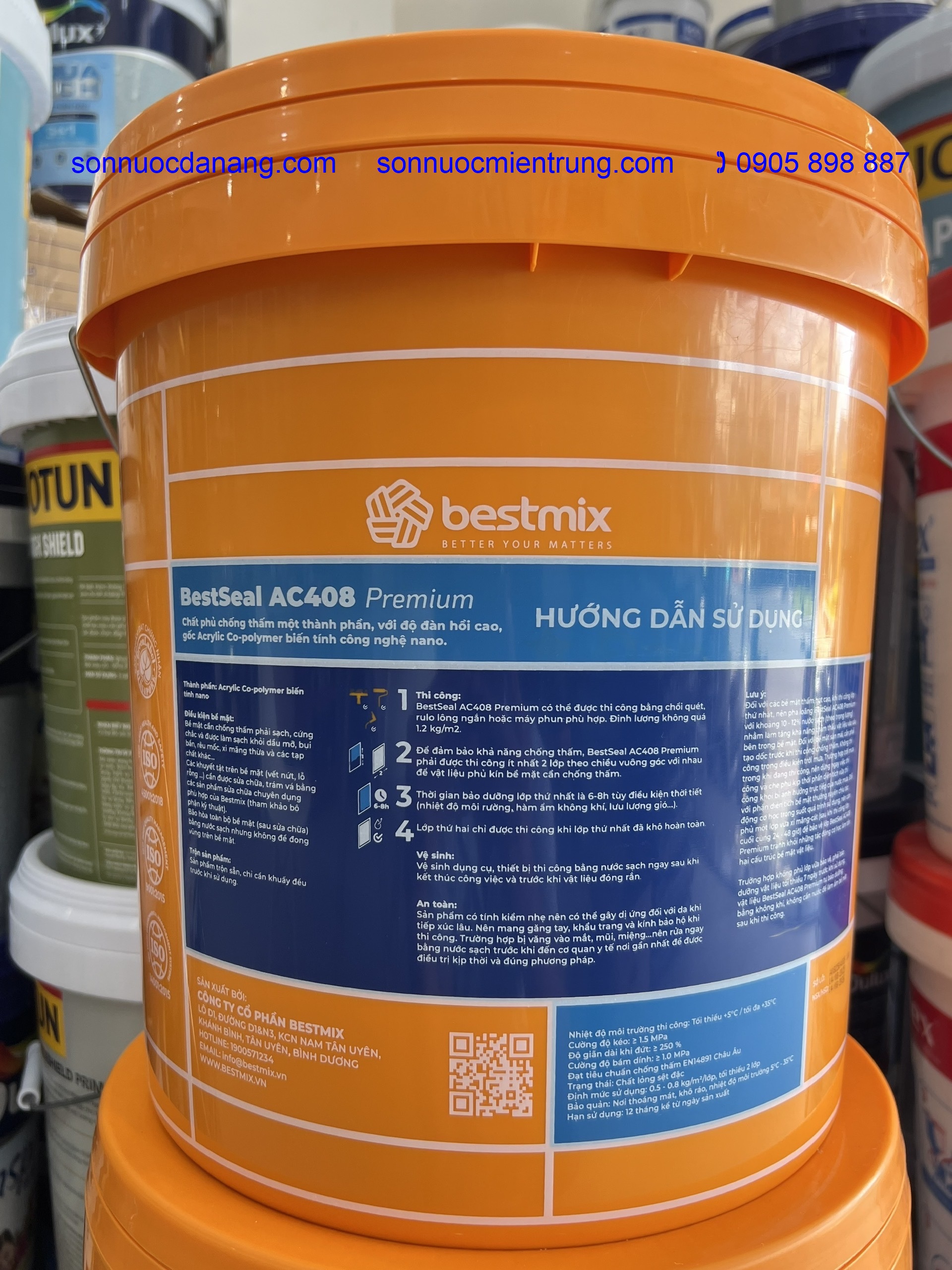 AC408 Bestmix tại Đà Nẵng, Hồ Chí Minh, Hà Nội là chất phủ chống thấm siêu đàn hồi, một thành phần, gốc Acrylic Co-polymer biến tính công nghệ nano với tính năng cường độ bám dính cực cao. Cường độ kéo, cường độ bám dính, độ giãn dài rất cao (không yêu cầu lớp lót). Có khả năng bịt các vết nứt rộng (đến 02 mm). Chịu thời tiết, chống tia tử ngoại, giảm hấp thụ bức xạ nhiệt, độ bền dài lâu.Chống xuyên thủng của rễ cây nên thích hợp cho sàn cảnh quan, bồn hoa…Chịu tác động của các chất tẩy rửa, kiềm, dầu mỡ động thực vật, nước biển…Một thành phần, dễ thi công với những dụng cụ như: ru-lô, cọ quét, vòi phun, …Gốc nước, không chứa VOC, không độc hại, không gây ô nhiễm nguồn nước (kể cả nước sinh họat) khi tiếp xúc trực tiếp sản phẩm. Không cháy, không mùi, thân thiện môi trường.
